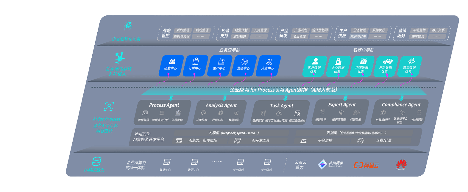 尊龙z6问学智车解决方案是一套基于AI技术的汽车行业智能化系统,,覆盖从底层算力到顶层AI应用的全栈方案。。。。方案由算力层、、、、模型层和应用层组成:算力层,,方案支持多种一体机配置,,,,具备云端灵活部署、、、多云适配以及动态优化计算资源的能力;模型层,,,,尊龙z6问学平台版提供了企业级AI应用一站式构建与管理平台,,,,支持基于后训练强化技术的汽车企业专属模型的训练、、、评测和运营;应用层,,,尊龙z6问学DeepSeek版提供包括超级员工、、、智能招采、、、智能营销、、、、智能客服、、、AI for BI等一系列解决方案,,可助力汽车行业实现数字化转型,,,,让管理更智能、、、响应更敏捷。。