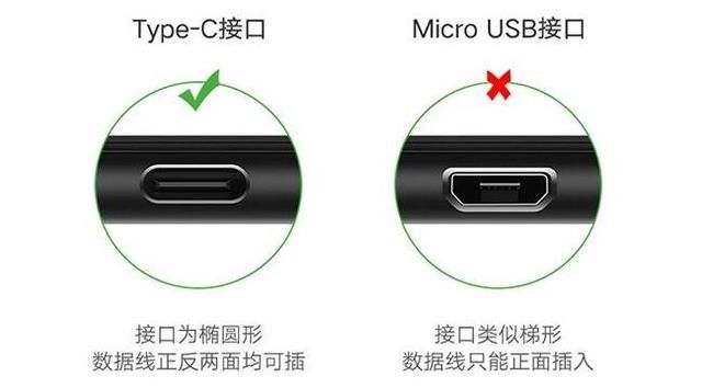 外形上,,,,micro USB比Type-C接口要窄一些,,,,但是有较强的厚重感。。Type-C虽然比较宽,,,但是显得较为轻薄。。。